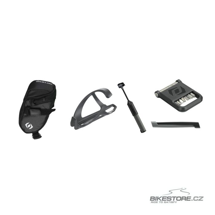 Základní sada obsahuje středně velkou podsedlovou brašničku, sadu montpák, mini pumpu HV2.0 a černobílý košík Tailor na bidon (lahev), abyste vše potřebné na vyjížďku měli vždy s sebou.