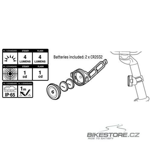 Malé dvoudiodové světlo, které se zapíná jednoduchým „kliknutím“ na krycí sklo. Disponuje svítivostí 4 Lumeny a je viditelné i z boku, abyste byli nepřehlédnutelní i pro auta přijíždějící ze strany. Díky silikonovémuupínacímu pásku světlo přiděláte na kolo bez nářadí a během vteřiny. K dispozici také v sadě s blikačkou Click Front. • režimy: 2, svícení a blikání • výdrž: až 70 hodin svícení, 130 hodin blikání • baterie : 2x CR2032 • voděodolnost: standard IP-65 • hmotnost: 20 g |