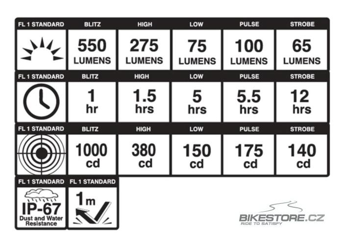 Výkonné světlo Blackburn se svítivostí 550 lumenů a dobíjením přes USB-C. S hmotností 60 g a malými rozměry můžete mít tohle světlo neustále u sebe. Světlo je také k dispozici ve zvýhodněné sadě s blikačkou Grid Rear.SVÍTIVOST 550 lumenů MÓDY Blitz 550 lumenů/1 h, High 275 lumenů/1,5 h, Low 75 lumenů/5,5 h, Pulse 100 lumenů/5,5 h, Strobe 65 lumenů/12 h VLASTNOSTI 1x Osram 3737 LED, voděodolné dle standardu IP-67 DOBÍJENÍ USB-C (3 hodiny), indikátor nabití baterie VÁHA 60 g |