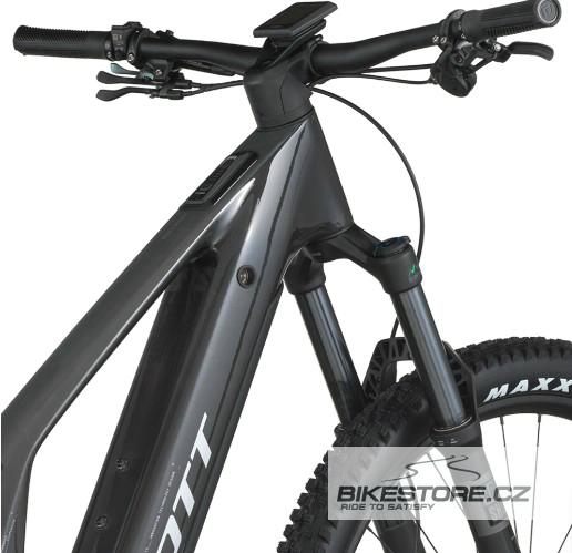 Klíčové vlastnosti- Carbon Main Frame, Alloy Rear Triangle - Bosch CX, 800Wh PowerTube, SmartSystem Engine System - Vidlice RockShox Psylo, zdvih 150 mm - Tlumič X-Fusion Nude, TracLoc, zdvih 150 mm - Sada Shimano Deore, 12 rychlostí - Diskové brzdy Shimano 4 Piston - Ráfky Syncros MD-30 - Pláště Maxxis Foldable - Teleskopická sedlovka a komponenty Syncros --- TO NEJLEPŠÍ Z OBOU SVĚTŮ Má Patron 920. Je připraven zdolat jakékoli stoupání a radostně, s jistotu a sebevédomím se pustit z kopce dolů. 150mm přední i zadní zdvih si poradí s každým terénem, prostřednictvím technologie TracLoc si navíc tlumení upravíte za jízdy a spolehlivě tak můžete jezdit za všech podmínek. Díky promyšlené konstrukci a designu je práce na tomto elektrokole snem každého mechanika. Baterii lze snadno vyjmout, komponenty jsou chytře integrované a tlumič dobře přístupný. Kryt chrání před nečistotami a prodlužuje servisní intervaly. Pohonná jednotka s točivým momentem 100 Nm a 800Wh baterie dává dostatečný dojezd na krátké rychlé vyjížďky i celodenní výlety. Výběr je na vás. Upozorňujeme, že specifikace kol se mohou změnit bez předchozího oznámení. Rám: Carbon Main Frame, Alloy SST-CST / Integrated Suspension Technology / Virtual 4 Link kinematic / Adjustable head angle / Syncros Cable Integration System / Bosch Smart System / UDH Interface / 12x148mm with 55mm Chainline / Bosch PowerMore Ready / Kickstand mount Vidlice: RockShox Psylo Silver RC Air, E-Bike / Comp & Reb Adj. / QR Axle 15x110mm axle / 44mm offset / tapered steerer / 150mm travel Tlumič: X-Fusion NUDE 5 RLX Trunnion / SCOTT custom w. travel, geo adj. / 3 modes: Lockout-Traction Control-Descend / Reb. Adj. / Travel 150-100-Lockout / T185X55mm Ovládací systém: SCOTT TracLoc 2 Technology / Suspension & Dropper Remote / 3 modes Motor: Bosch Performance Line CX (BDU384Y) / EU: 25kmh, INT: 20mph Baterie: PowerTube 800Wh Displej: Bosch System Controller, Mini Remote & Intuvia 100 Nabíječka: 4A Charger Přehazovačka: Shimano Deore RD-M6100 SGS / Shadow Plus / 12 Speed Řazení: Shimano Deore SL-M6100-IR / Rapidfire Plus Kliky: FSA Alloy Vodítko řetězu: e*thirteen, e*spec Slider Převodník: FSA 12 Speed 36T chainring Řetěz: Shimano CN-M6100 Kazeta: Shimano CS-M6100 / 10-51 Brzdy: Shimano MT520 4 Piston Disc Přední brzdový kotouč: SM-RT64 CL 220mm Zadní brzdový kotouč: SM-RT64 CL 203mm Řidítka: Syncros Hixon 2.0 Alloy 6061 / Size S & M 15mm rise, Size L & XL 25mm rise / back sweep 8° / 780mm / Syncros Performance XC lock-on grips Představec: Syncros AM 2.0 / Syncros Cable Integration System / 4° rise / 6061 Alloy / 31.8mm / 1 1/8'' Sedlovka: Syncros Duncan Dropper Post 2.5 / 31.6mm / S size 125mm, M size 150mm, L size 170mm, XL size 200mm Sedlo: Syncros Tofino 2.5 Regular Hlavové složení: Syncros - Acros Angle adjust & Cable Routing HS System / +-0.6° head angle adjustment / ZS56/28.6 – ZS56/40 MTB Přední náboj: Formula CL-811 / 15x110mm Zadní náboj: Formula ECT-148M / Boost 148x12mm Výplet: Stainless Black Ráfky: Syncros MD30 / 32H / 30mm / Pin Joint / Tubeless ready Přední plášť: Maxxis Forekaster 29x2.6'' / 120TPI Foldable Bead / EXO / TR Tubeless ready / 3C Maxx Terra Zadní plášť: Maxxis Forekaster 29x2.6'' / 120TPI Foldable Bead / EXO / TR Tubeless ready / 3C Maxx Terra Světla: Syncros integrated rear fender light / Front Light Cable pre-installed Hmotnost v kg (cca): 24.8 Max. systémová hmotnost: 130 kg (Celková hmotnost zahrnuje kolo, jezdce, vybavení a případné další zavazadlo) Parametry (pro variantu L)